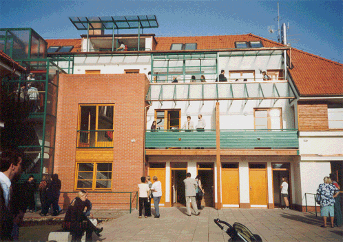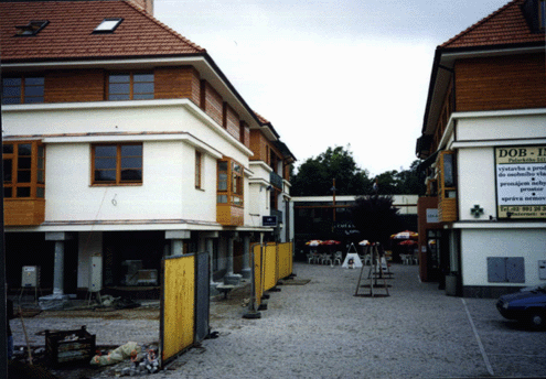 zatravněný povrch vytvořil příjemný obytný vnitroblok.