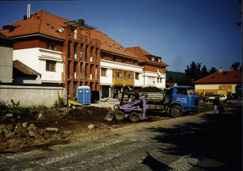 vznikající veřejný prostor budoucího náměstí a obohatila ho